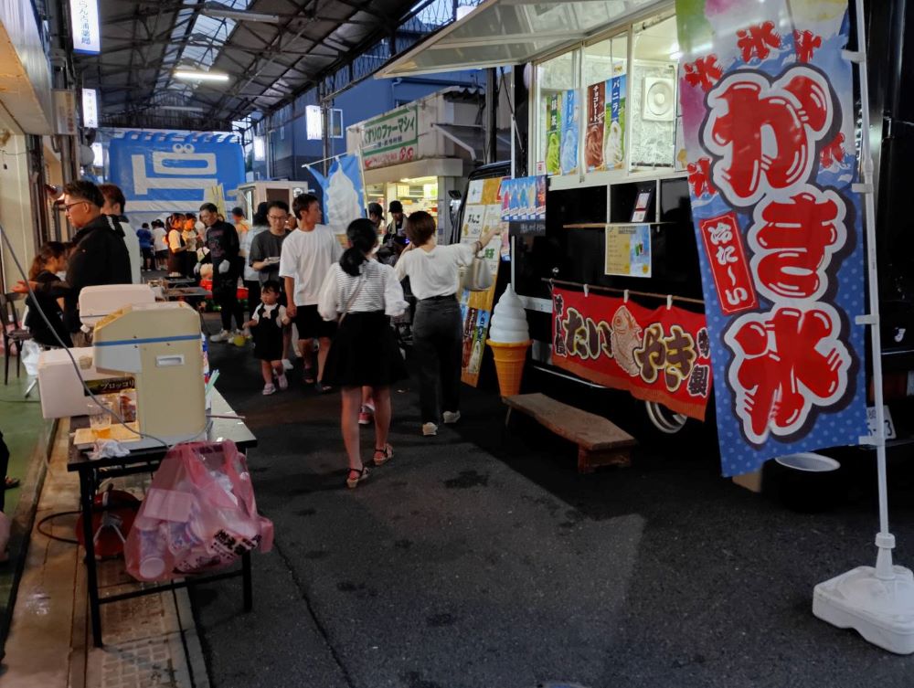 吉浦アーケードでは、土曜市が催され、夏のひとときを楽しんでいました