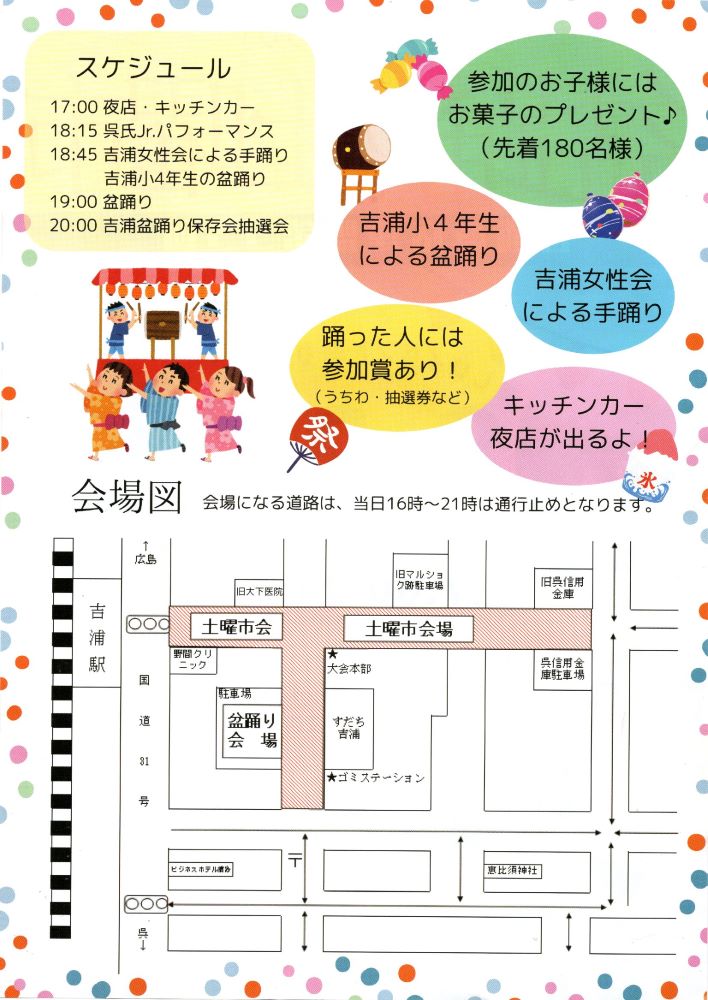 吉浦ふれあい第33回吉浦盆踊りと土曜市のチラシ