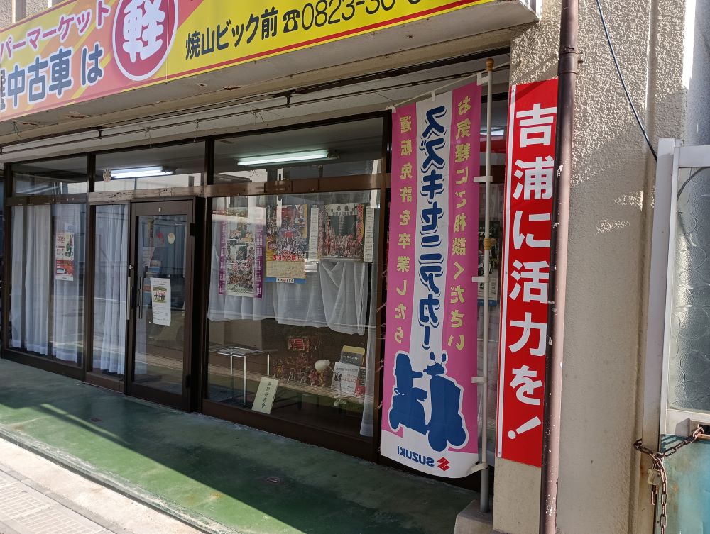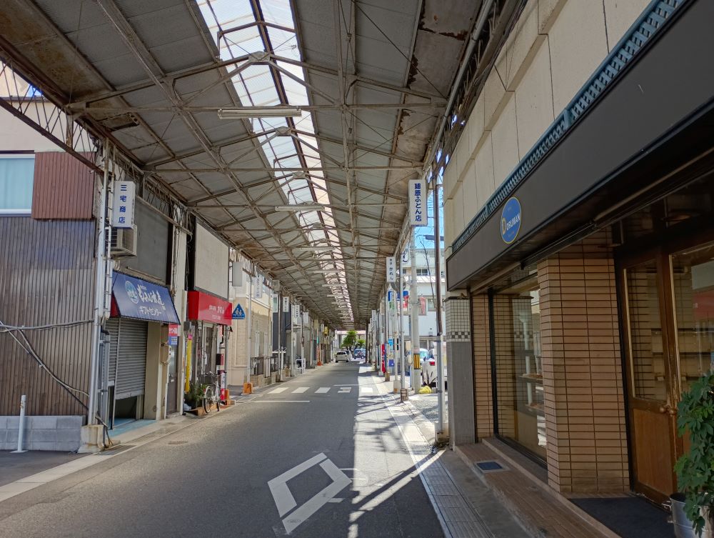 吉浦駅から焼山に至るこの道は、県道278号線で、そこにアーケードがあります。高さ5メートル、幅5メートルのこのアーケード通りには、最盛期には、スーパー、ケーキ店、本屋、履物店、布団店、写真店、学生塾、金融業、クリーニング店、不動産屋、チケットショップなど約40店舗あったのです。