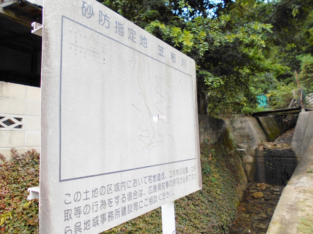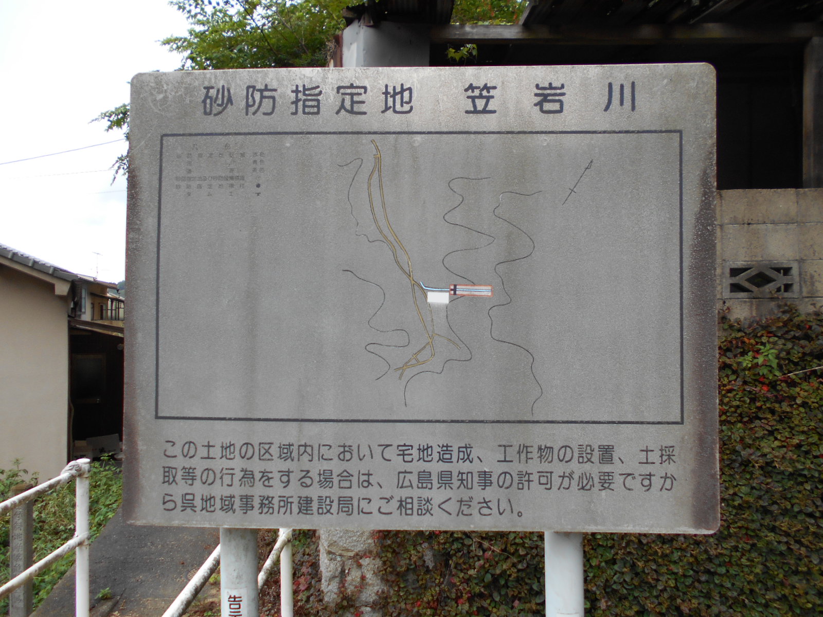 この表示板は、笠岩川が土石流危険渓流であることを示しています。