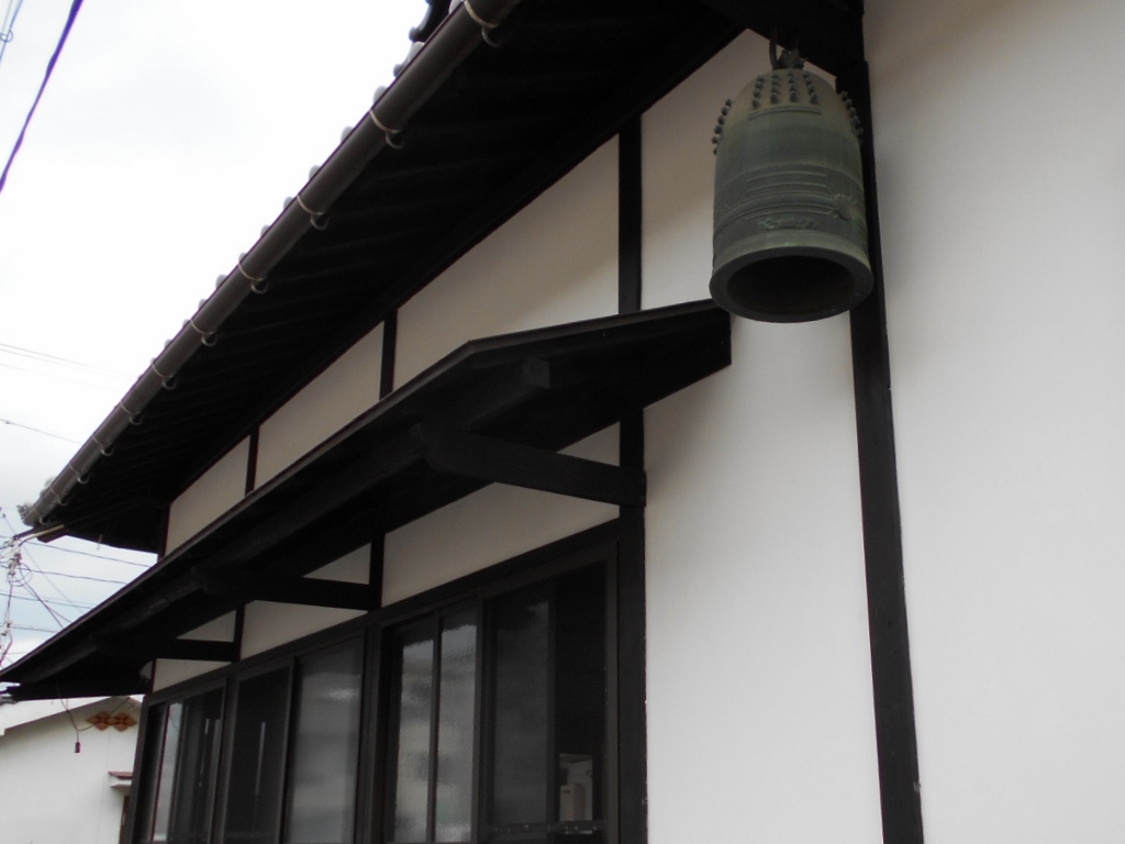 勝法寺の白壁に、半鐘が吊ってありました。合図や知らせるために使うのでしょうか。