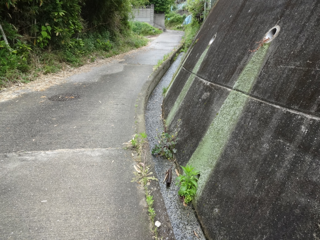 吉浦新出町を歩いていたら、川の流れに沿って二つの表示板がありました。近づいて見ると、「崩壊危険区域」と、「笠岩川」の表示板でした。たしかこの川は神賀川の筈だが・・。