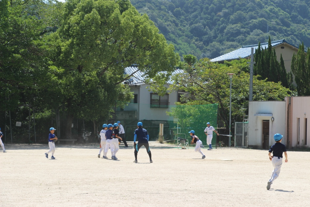 打つ、捕る、投げる、走る。広島東洋カープのように、チーム一丸となって練習し、対外試合もしています。運動場はナイター照明が完備しているので、吉浦スターズは、夜間も使用しています。