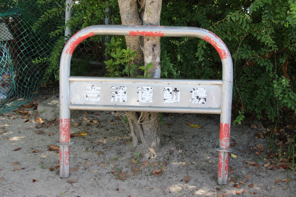 入り口で見た車止めのパイプ柵には、「吉浦運動場」と記されています。吉浦スタ―ズは、この運動場を、「吉浦グラウンド」と呼称し、ホームグラウンドとして親しんでいます。