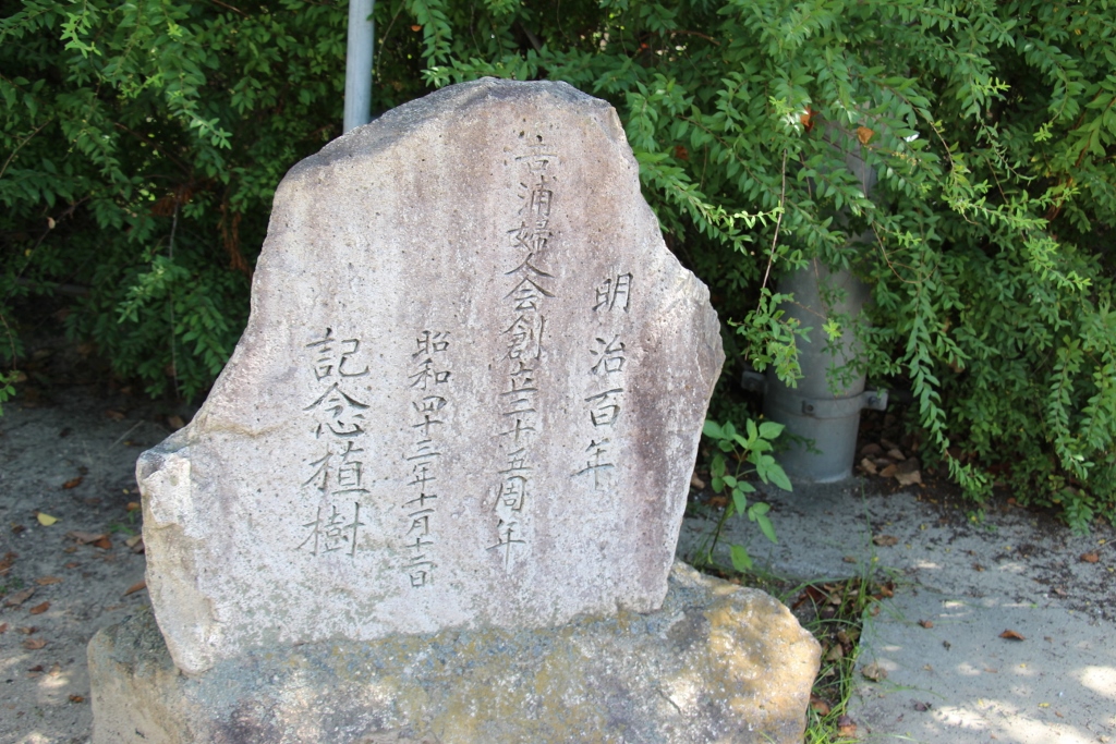 吉浦運動場の入り口には、明治100年の節目に記念植樹した吉浦婦人会の石碑がありました。